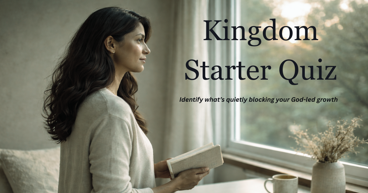 Kingdom Starter QuizSign UpGeneral LoadDecision PressureAfter ConversationsFaith ExperienceEnergy LeakInner DialogueGrowth FrustrationBody SignalWhat You Want MostThis Kingdom-based quiz reveals where your growth may be restricted — not from lack of faith or effort, but from carrying weight that was never yours to hold. Answer honestly, not ideally.First NameEmailI consent to have this website store my submitted information so they can respond to my inquiryI have read and agree to the Terms and Conditions and Privacy PolicyPreviousNextWhen you think about your current season, what feels most true? I know what matters, but I struggle to stay consistent Other people’s situations stay with me long after they should I’m faithful, but internally worn down I feel responsible for keeping things from falling apartPreviousNextWhen a decision needs to be made, what creates the most tension? The effort required to stay faithful through it The difficulty of following through long-term The emotional reaction it might trigger The impact it will have on othersPreviousNextAfter dealing with someone else’s problem, what happens? I replay it mentally throughout the day I feel heavy but keep pushing I lose momentum on my own priorities I feel responsible to fix or manage the outcomePreviousNextWhich statement best reflects your faith right now? My faith has become closely tied to responsibility My faith is steady, but my emotions lag behind My faith is clear, but my rhythms aren’t My faith feels more like endurance than closenessPreviousNextWhat drains your energy most? Staying faithful while tired Carrying outcomes I can’t control Absorbing emotional stress Restarting routines repeatedlyPreviousNextWhich thought shows up most often? “I need to get back on track… again.” “If I don’t handle this, who will?” “I just need to push through.” “I can’t stop thinking about this.”PreviousNextWhen growth feels slow, you tend to think: I need to be more emotionally available I need a better structure I need to take on more responsibility I need to be more disciplined spirituallyPreviousNextYour body most often signals stress through: Exhaustion Tension or tightness Inconsistency Mental restlessnessPreviousNextWhat You Want Most Space to reconnect with God without pressure A way to care without absorbing Simple rhythms that don’t overwhelm Clarity on what’s mine to carryPreviousSubmit Form